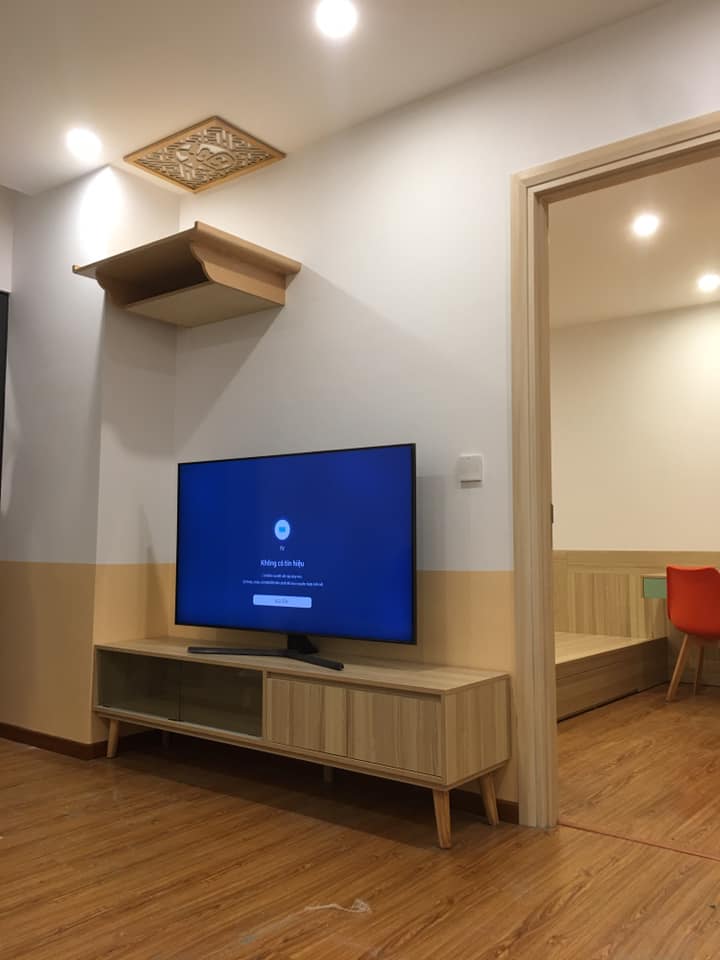 Không gian phòng khách được thiết kế mở, liên kết với bếp mang lại cảm giác thoáng đãng. Hệ tủ trang trí, tủ giày và kệ TV đều sử dụng MDF chống ẩm phủ Melamine, đảm bảo chống cong vênh hiệu quả trong điều kiện khí hậu Việt Nam. Từng chi tiết được gia công bởi đội ngũ thợ tay nghề cao của Nội Thất Chạm, đảm bảo chuẩn kích thước và tỉ lệ phù hợp với nhà phố.