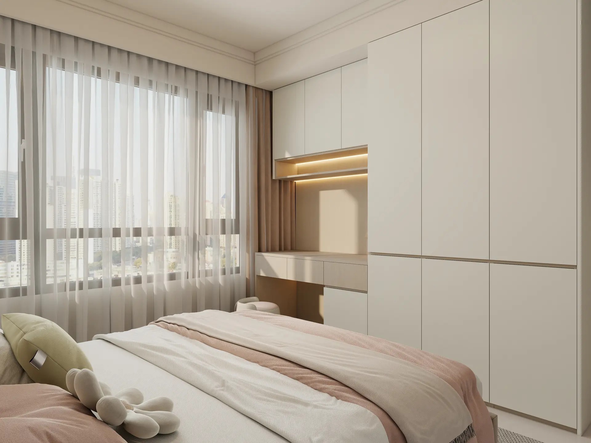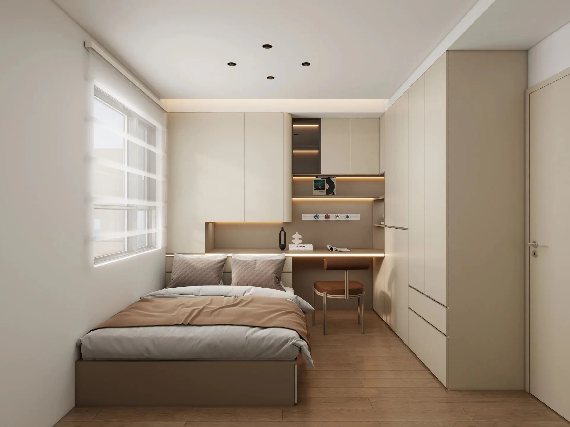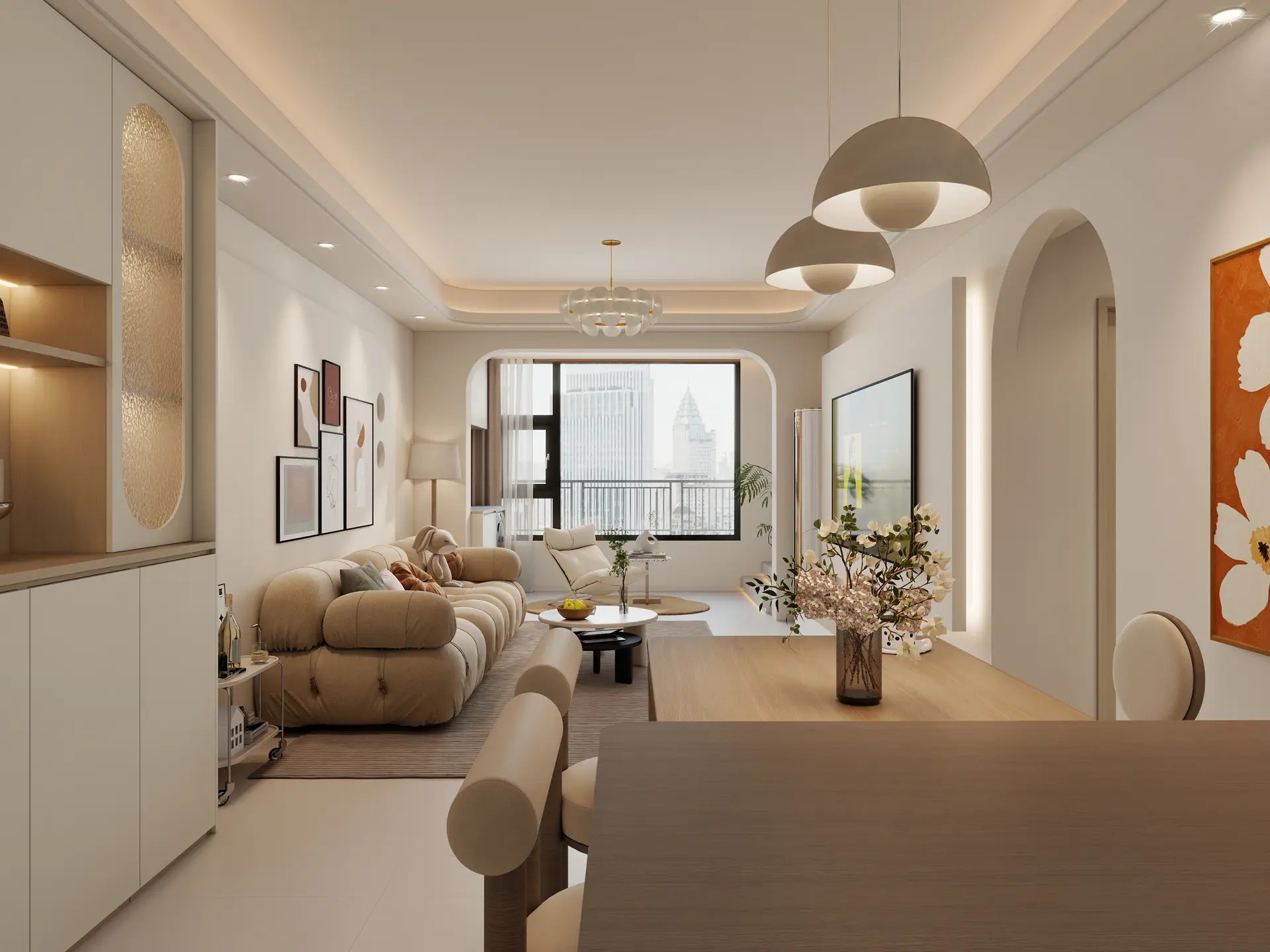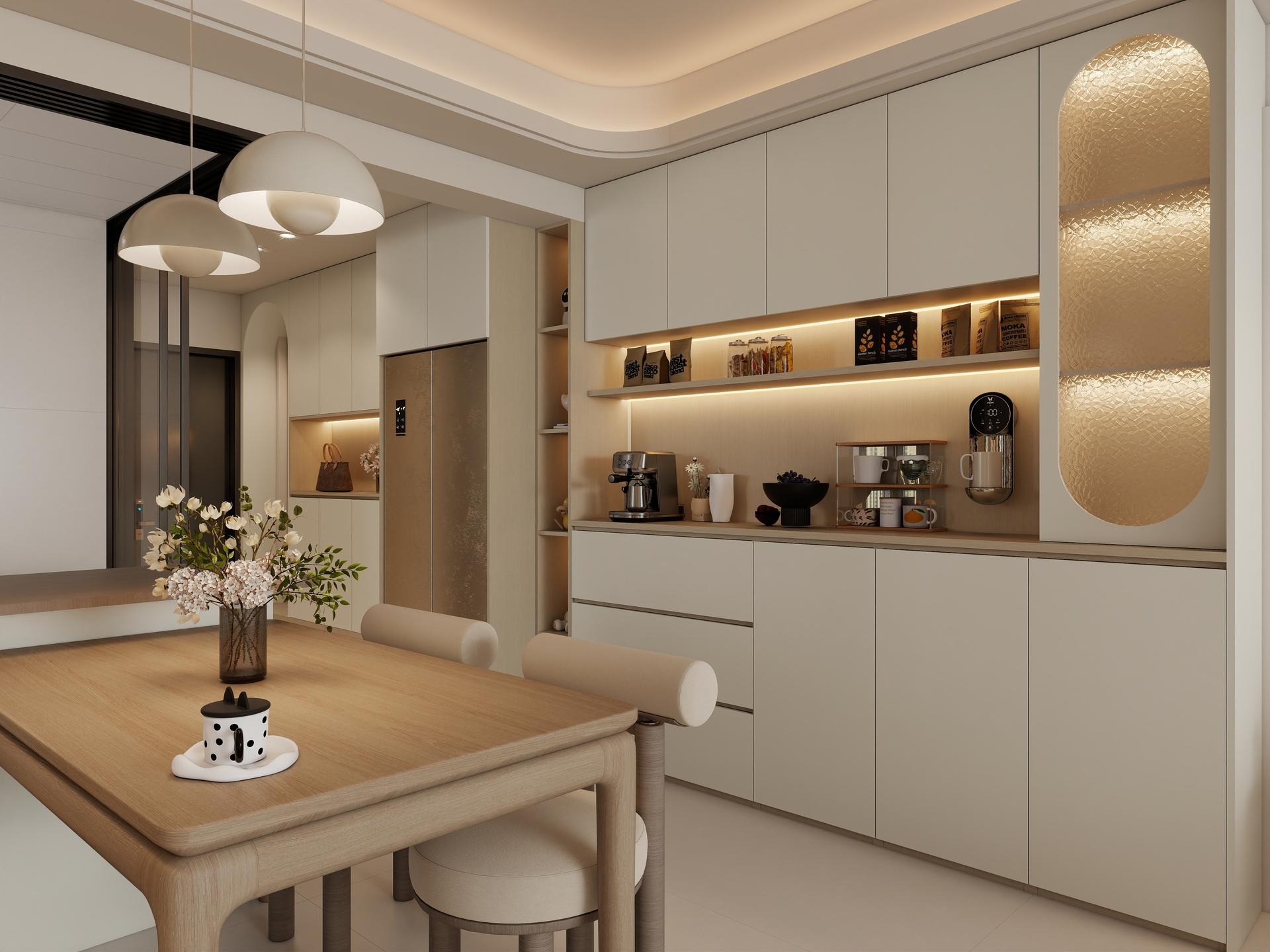 Trước đây căn hộ chỉ là không gian trống, thiếu điểm nhấn. Sau khi được bố trí nội thất gọn gàng, màu sắc hài hòa và ánh sáng, căn hộ trở thành một không gian hiện đại, sang trọng nhưng vẫn thoải mái để ở. Nhà phố 2 – Thiết kế nội thất nhà phố 2 phòng ngủ Dự án 1 – thiết kế thi công căn hộ hud cho cô chú với sự hài lòng cao