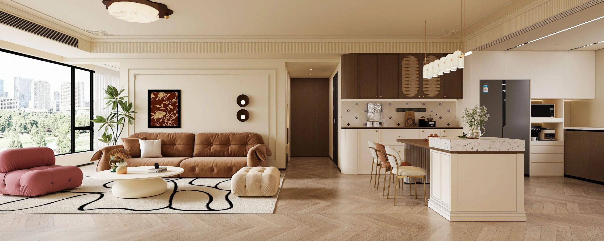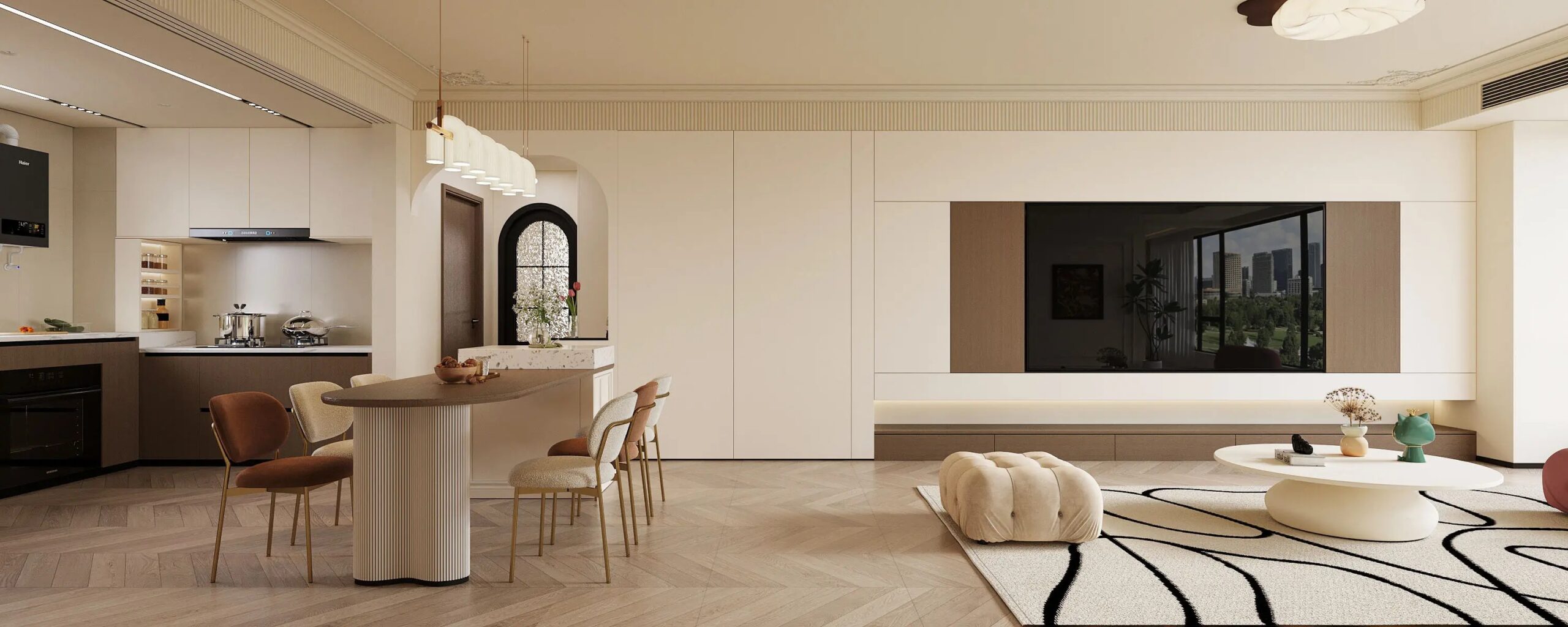 Thiết kế mở phòng khách & bếp, 2 phòng ngủ riêng tư, nội thất đơn giản mà sang. Nhìn thôi đã thấy “chill”.